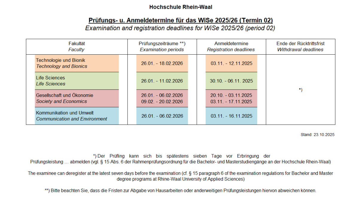 Additional examination-related information (dates, times, types, permitted materials etc.) will be published by your faculty before the start of the examination period.